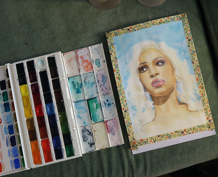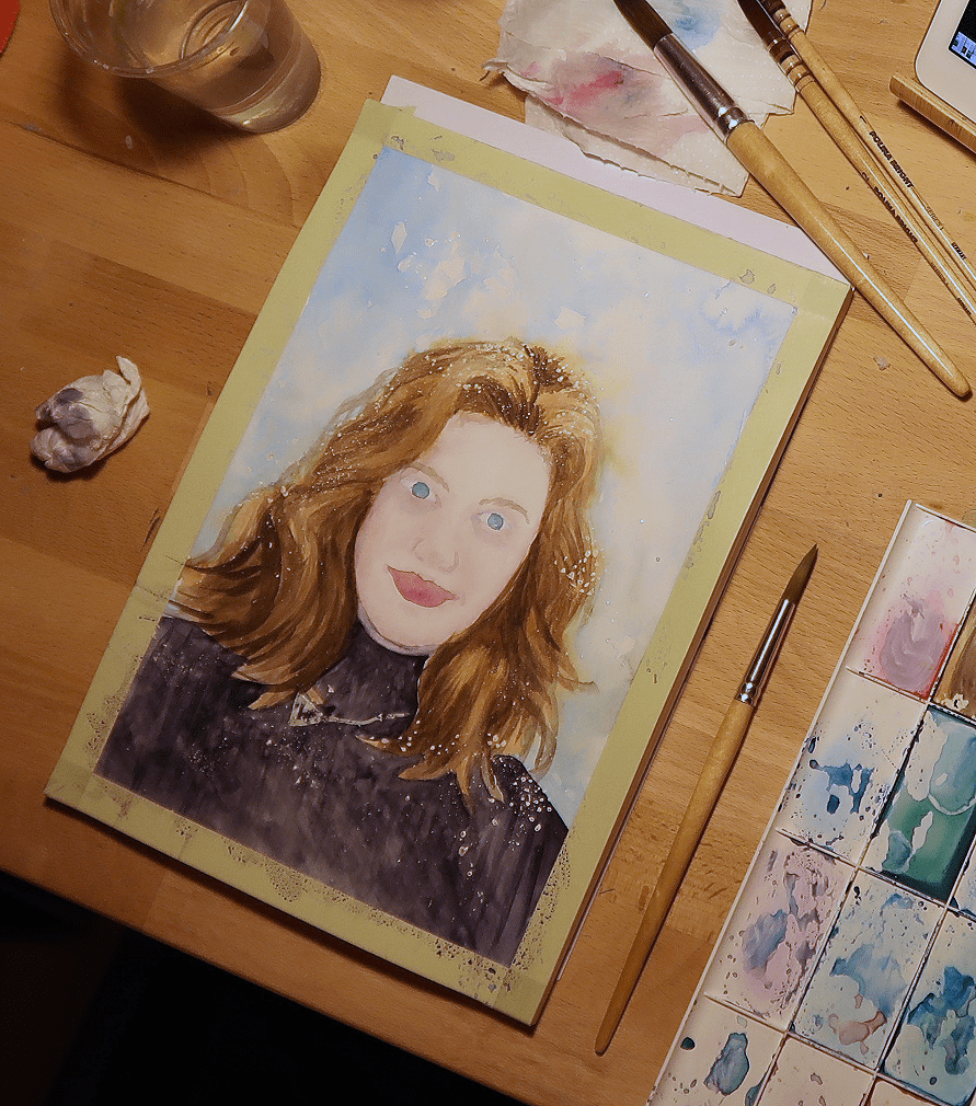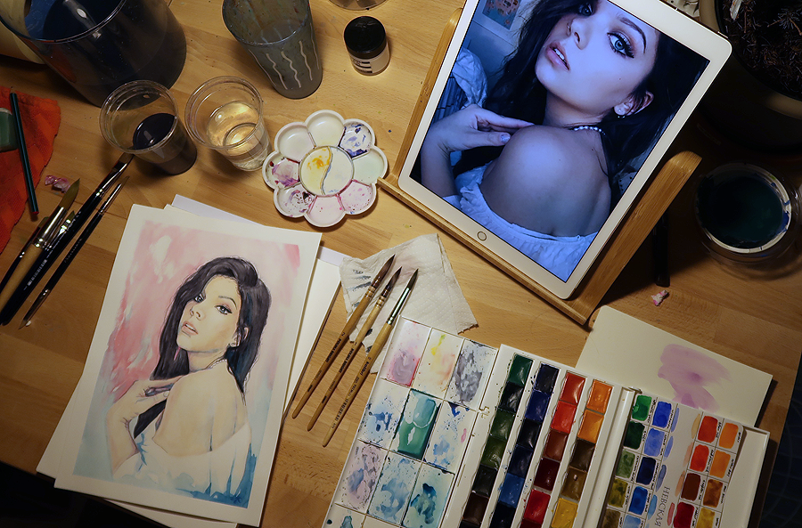 I was still itching to do a few portraits studies. I wanted to try out using only water colors and then I did also few with colored pencils.