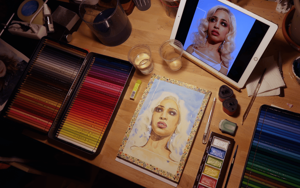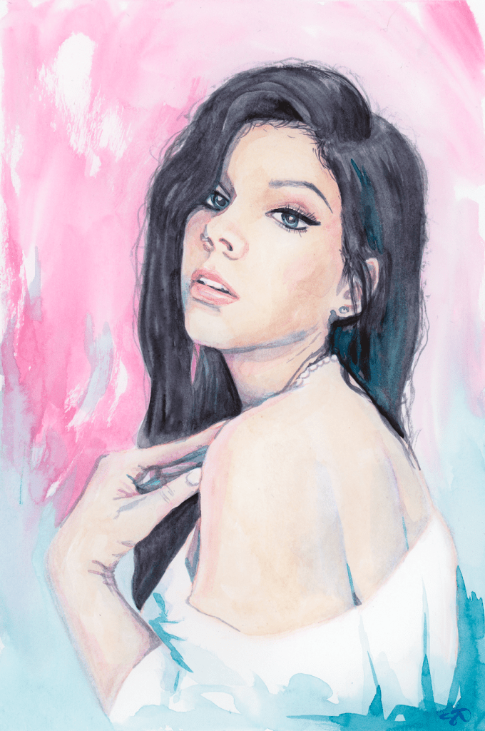 I used water colors to lay most of the colors and then I started fine tuning with Luminance Pencils (Caran d’Ache Luminance 6901). The luminance set has quite many ‘pastel’, lighter shades so it was good for this painting with pale complexion.