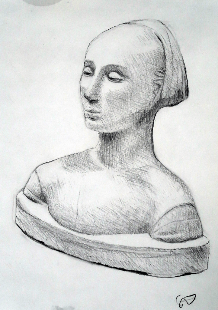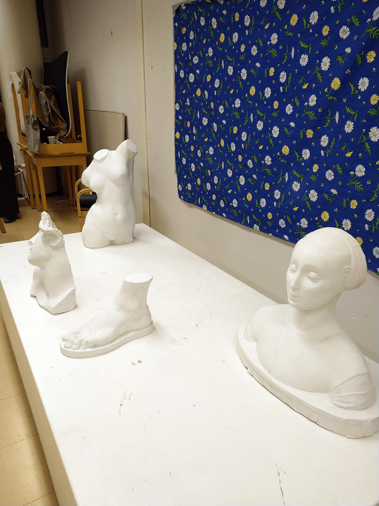 - The course starts with drawing plaster models and in the end of the course with live model