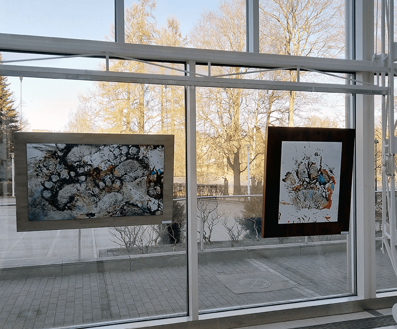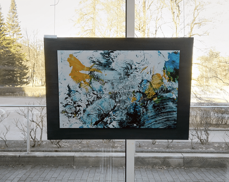 I also recently visited one exhibition. This was not such a serious visit but more of an interesting thing to see, art made by a bear, or the bear being a tool in the production of art. In the end of February I went to Juuso the bear’s exhibition at Tampere in Tampere Hall (Tampere-talo) 😀