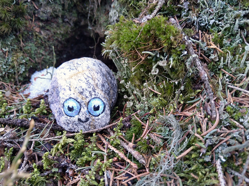 A little silliness, but hopefully conjuring a bit of happiness to random people. So, I’ve been painting some little stone critters that I will spread around into the nearby forest trails.