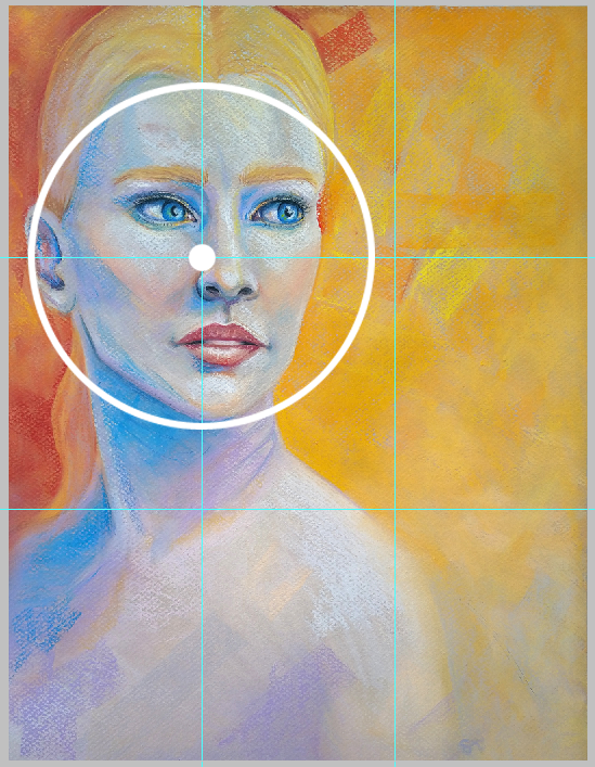 I did also aim to have her eyes as the most detailed and in focus part, but as said I originally was intending to have her head even higher and more to the left so I had other plans to tackle focus as well. I did leave some rough texture and colors to the bottom areas, but I mostly blended the edges and muted the colors a bit in background.