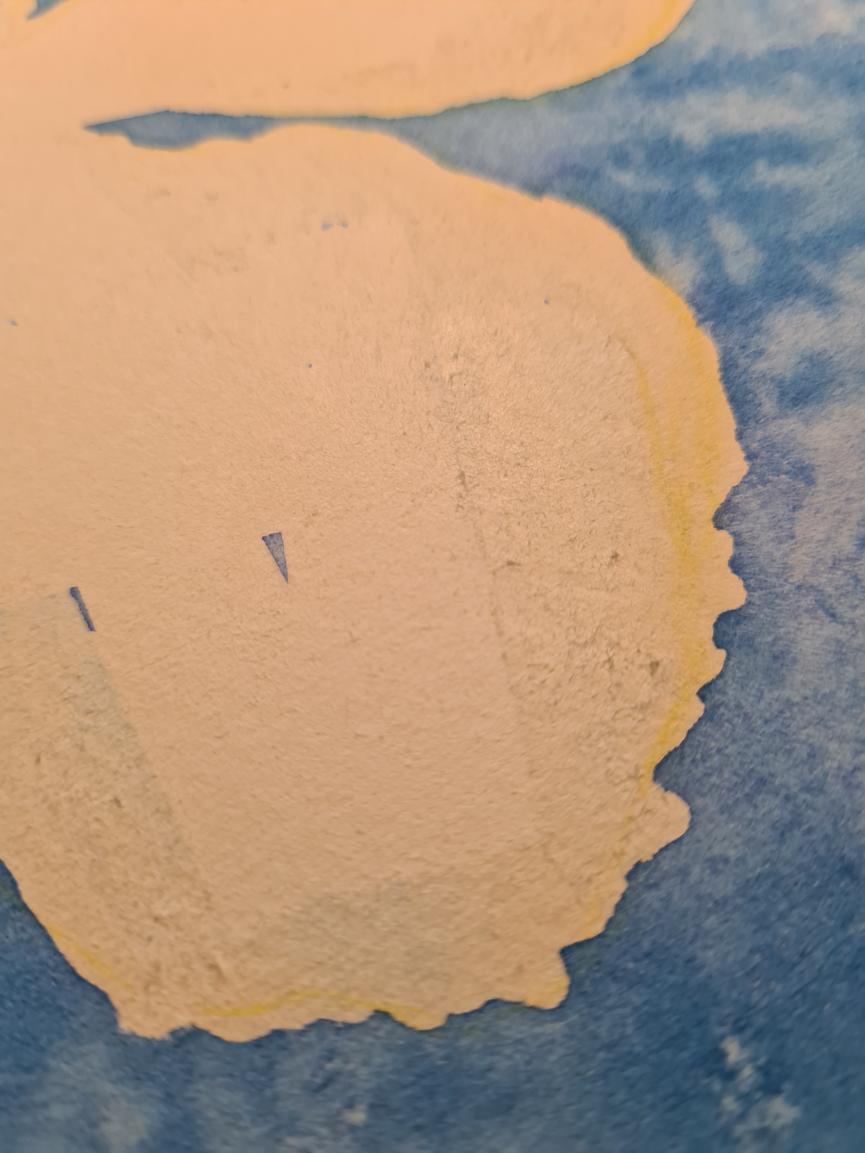 Yes. I managed to do it again. Even though I used different (schmincke) blue masking fluid than what I previously used and on a different paper (I now used my last sheet of Canson Moulin Du Roy, Hot pressed). (Water color painting – Forest spirit)