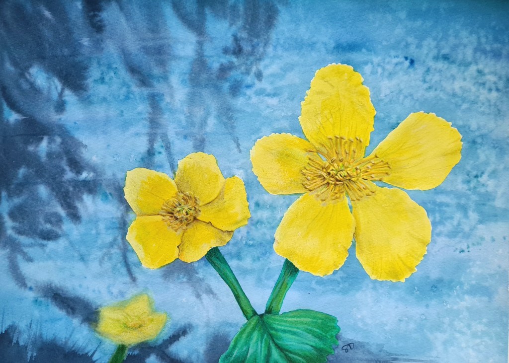 (This was a second take on marsh-marigold, I have yet to post the first one. It is currently waiting for group exhibition with some of my older waterlily and the recent wooden panel paintings)