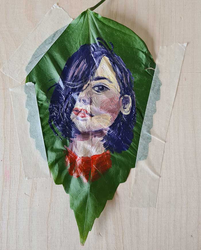 I did not try to preserve the leaf in any way, it was just an experiment. A mini portrait study for a coming painting course assignment of a portrait in a bigger self built canvas.