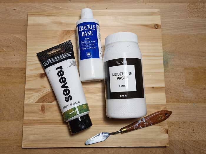 (I did not use the crackle base after all, only the modeling paste and gesso)