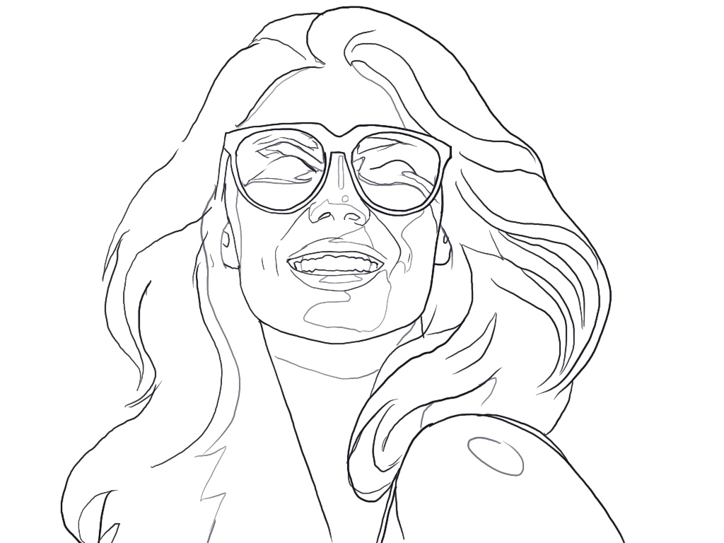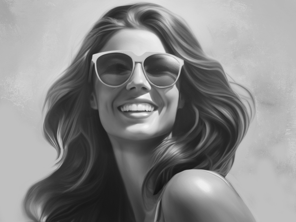 Also, A little background on the reference. I wanted to use a smiling woman in sunglasses. Instead of finding an image I can use and share with you, I generated a reference image using AI (Leonardo AI). I chose one of the options I created and reworked it in Procreate on my iPad. Here you can see the original wonky and wild AI monster (left side) and then the edited image (right side):