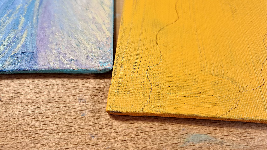 • Colored pencil (oil based) not so good with the thick layers and the rough panel surface with plastic on top